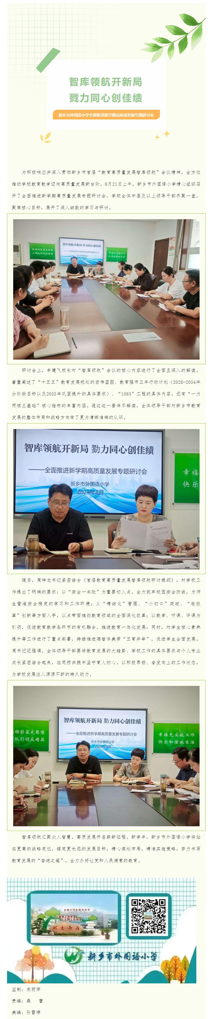 智库领航开新局 勠力同心创佳绩——新乡市外国语小学全面推进新学期高质量发展专题研讨会