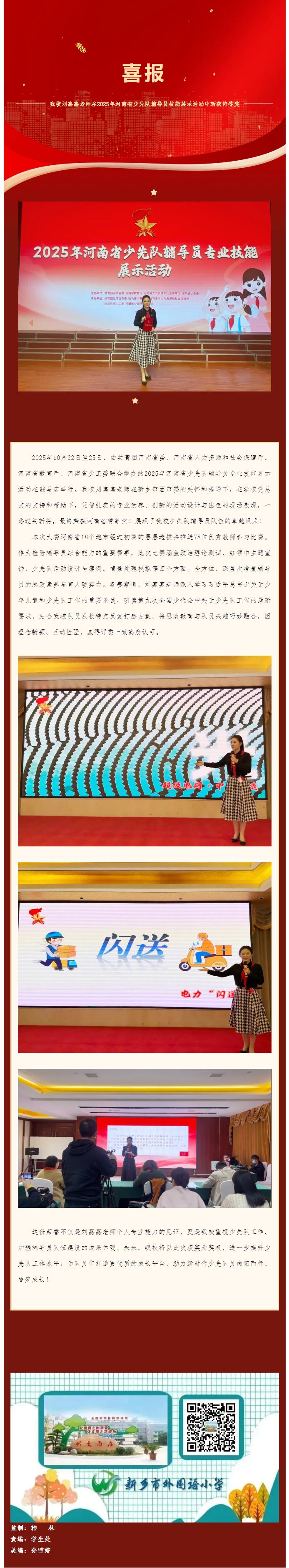 喜报!我校刘嘉嘉老师在2025年河南省少先队辅导员技能展示活动中斩获特等奖