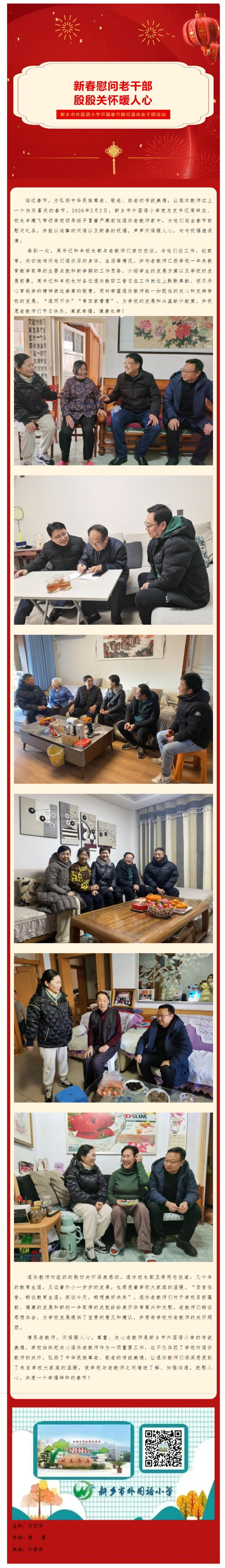 新春慰问老干部 殷殷关怀暖人心——新乡市外国语小学开展春节慰问退休老干部活动